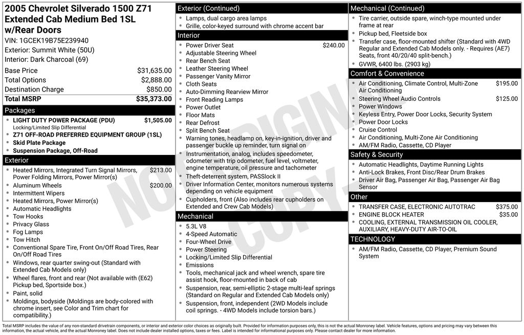 The LIGHT DUTY POWER PACKAGE and Z71 OFF-ROAD PREFERRED EQUIPMENT GROUP give it a solid foundation, especially with the LOCKING/LIMITED SLIP DIFFERENTIAL and OFF-ROAD SUSPENSION when things get a little rough. The TOW PACKAGE, BED-LINER, and RUNNING BOARDS make it that much more usable right away.