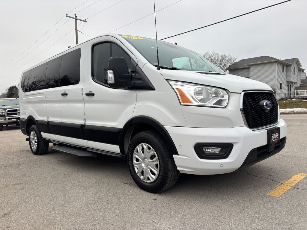 ONE OWNER. CLEAN HISTORY. This 2021 Ford Transit 350 LR Passenger XLT RWD is built to move people comfortably and efficiently, whether its for business, shuttle use, or group travel. Powered by a 3.5L V6 engine and paired with a smooth 10-speed automatic transmission, it delivers confident performance while maintaining a composed ride. The long wheelbase and passenger-focused XLT trim provide generous interior space, smart storage solutions, and everyday usability.